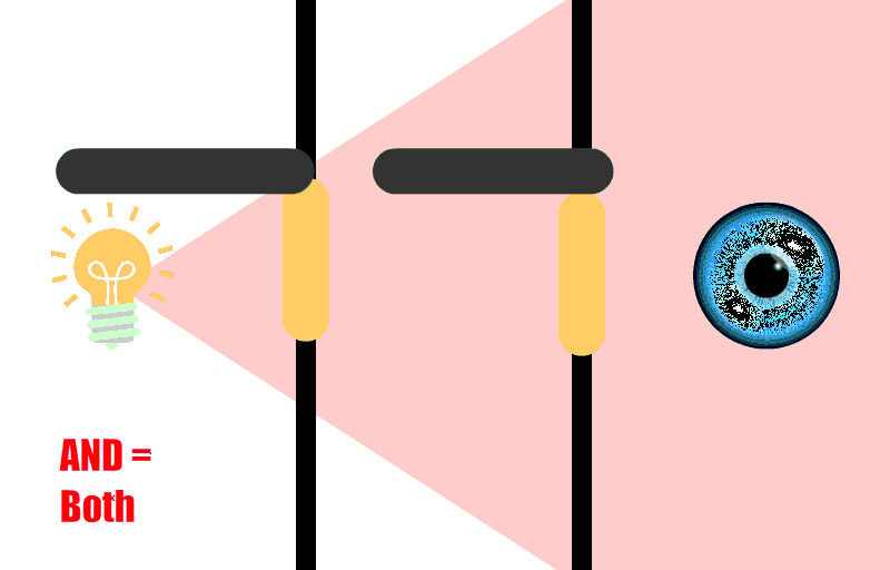 For this project, I first found the images of the light bulb and the eye. I then tried to find a way to create the light, which I ultimately created by drawing a yellow rectangle. In the original animation, the colors are more subtle. They did not translate well to the other formats. I created the OR scenario first and had the wall fly in; then I made the doors appear. I had to draw lines over the walls to make the light appear to go through the doors. For the AND scenario, I tried to reuse the wall and doors, which then seemed to cause chaos in the first animation, since it made the components move when I did not intend them to.